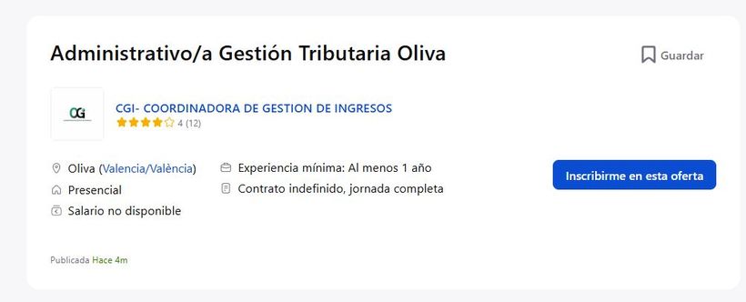 CGI- COORDINADORA DE GESTION DE INGRESOS publica esta oferta para trabajar en Oliva (Valencia)