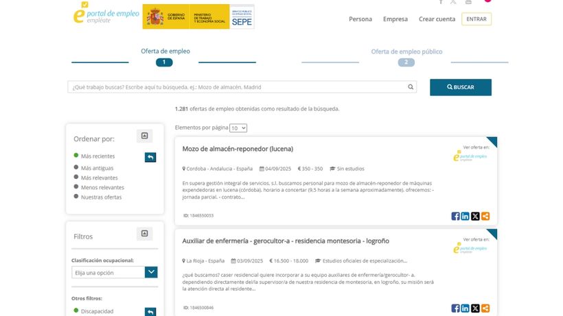 Para postular a estas vacantes hay que entrar en ‘Empléate’ y seleccionar ‘Discapacidad requerida’ en uno de los primeros filtros.