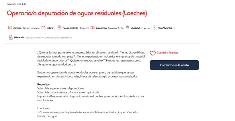 Se trata de un puesto de trabajo estable a jornada completa en planta de reciclaje.