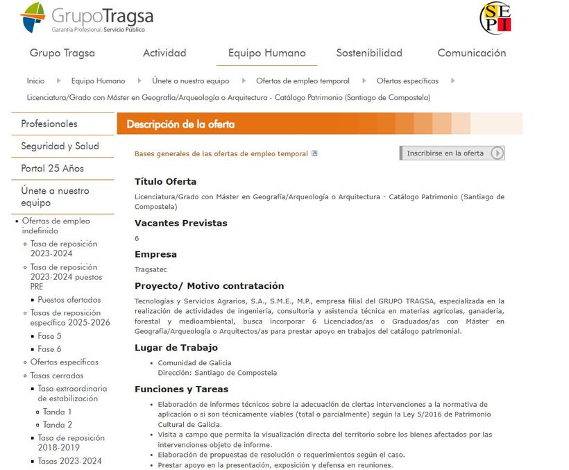Necesitan personal con Licenciatura o Grado con Máster en Geografía/Arqueología o Arquitectura para trabajar en el Catálogo de Patrimonio (en Santiago de Compostela).