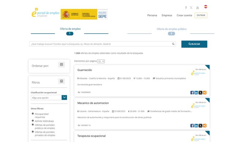 El portal laboral ‘Empléate’ del Servicio Público de Empleo Estatal (SEPE) ha publicado 31.842 ofertas de trabajo de las que 1.068 son para personal sin experiencia en diferentes sectores profesionales.
