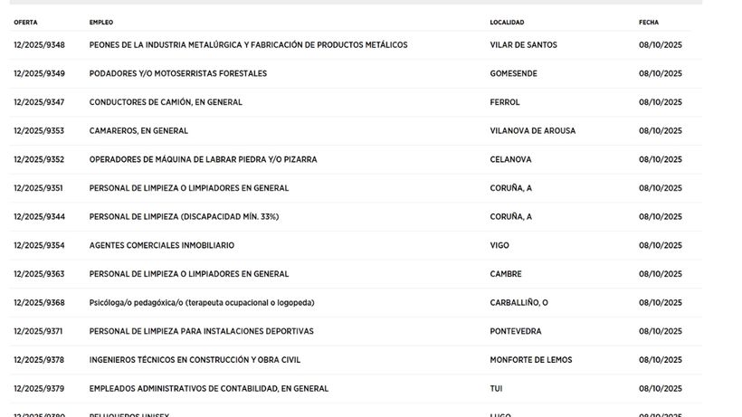 Emprego, la web de búsqueda de empleo de la Xunta de Galicia, ha actualizado su bolsa de empleo con vacantes en muchos municipios. Destacan las que no piden experiencia previa y tampoco estudios superiores como podadores, conductores o camareros.