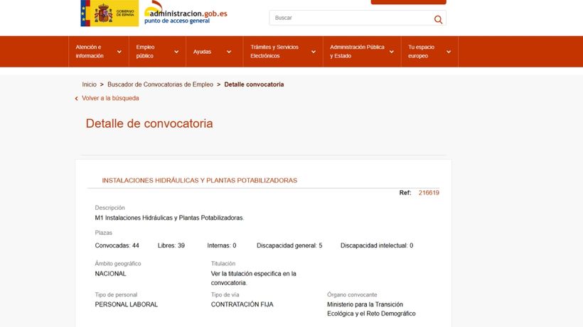 El Ministerio para la Transición Ecológica y el Reto Demográfico ha publicado una oferta de trabajo con contratación fija y 44 plazas, de las que 39 son libres y 5 para personas con discapacidad. La titulación es la que se recoge en la convocatoria oficial publicada en la web del Ministerio y forma parte de la nueva convocatoria de puestos para los grupos profesionales M1, E2 y E1 con 140 plazas en total.
