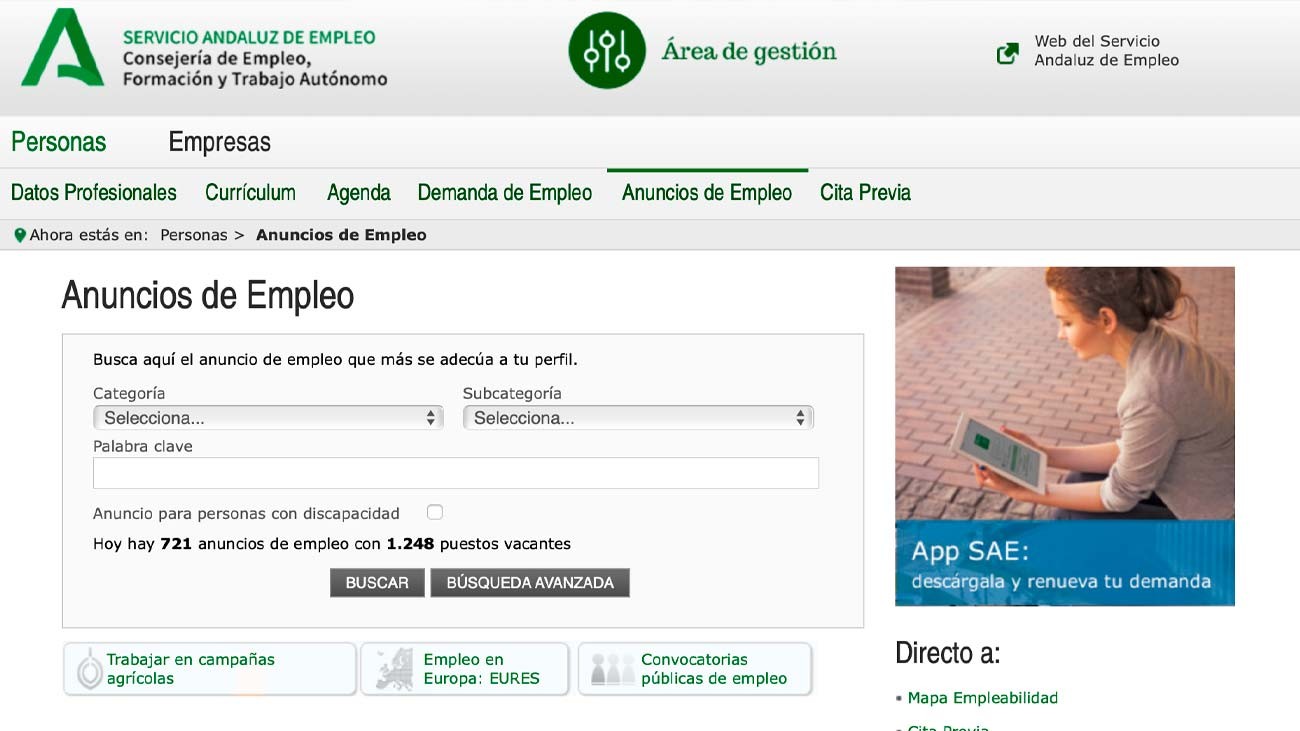 Te insistimos en que no olvides sellar el paro cada tres meses, porque de lo contrario no podrás a ninguna de estas oportunidades laborales del SAE, el portal de empleo de la Junta de Andalucía. Además, entre los requisitos para solicitar una oferta de empleo SAE está la búsqueda activa de empleo.