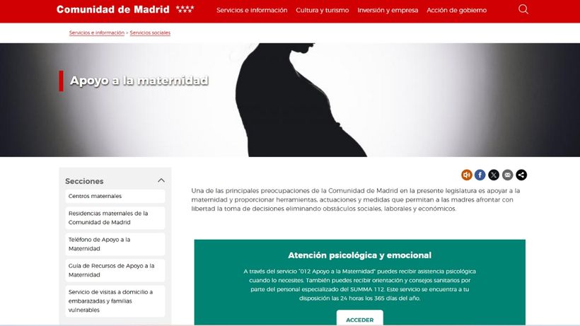 Además, pone disposición de los usuarios el número de teléfono 012 de apoyo a la maternidad, un número al que se puede llamar durante las 24 horas los 365 días del año.