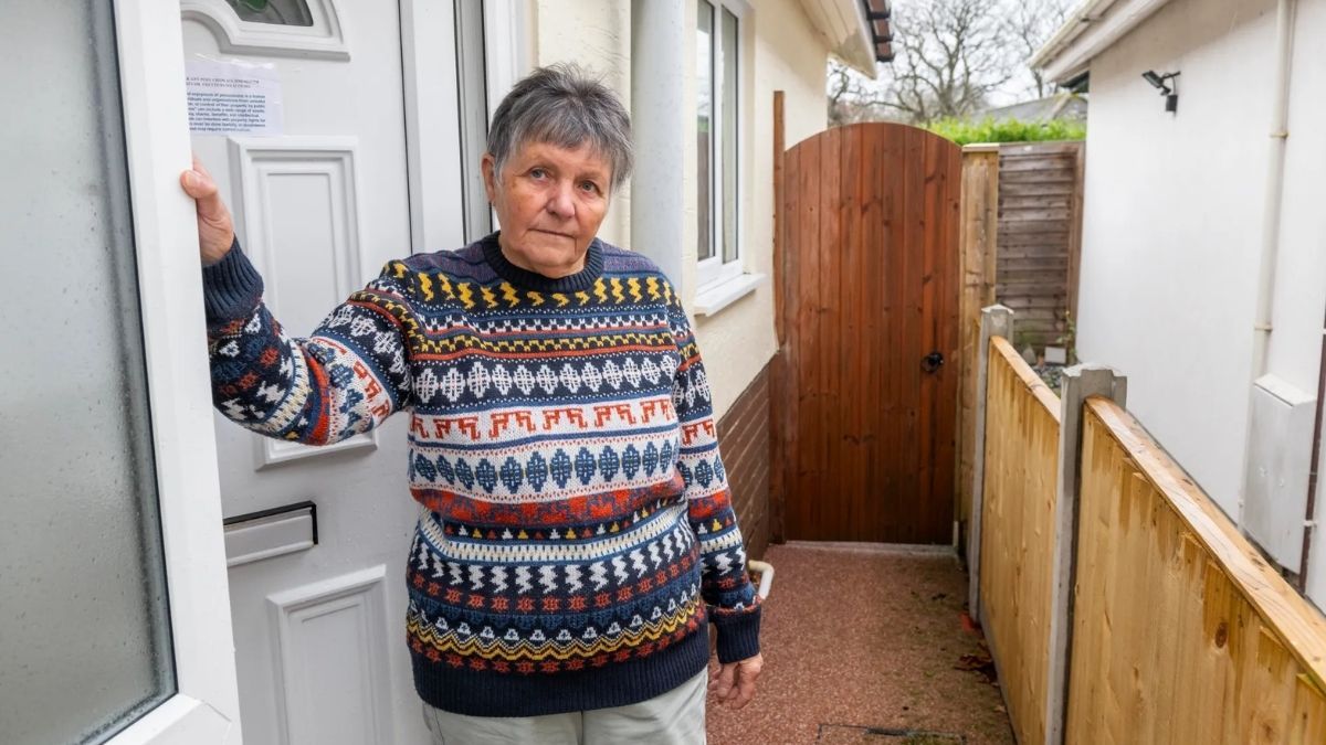 La jubilada junto a la valla en su casa |BNPS