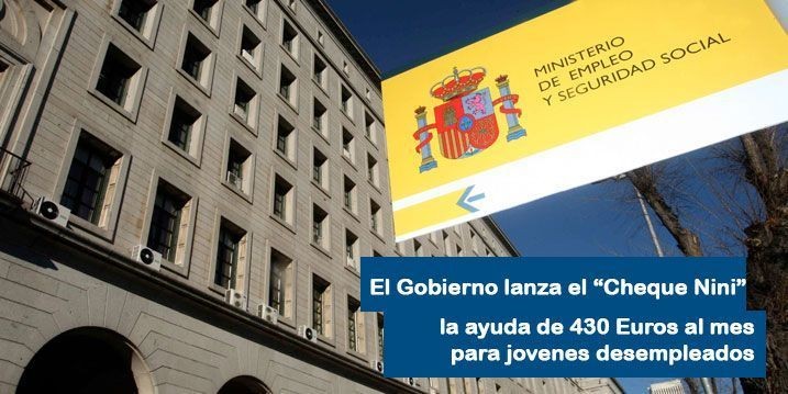 La ayuda para desempleados jóvenes o “Cheque nini” fue aprobado por el Consejo de Ministros. La Ministra de Empleo Fatima Bañez anuncio esta medida con el fin de poder ayudar a jóvenes que no tienen ni empleos ni estudian y buscan entrar en el mercado laboral.