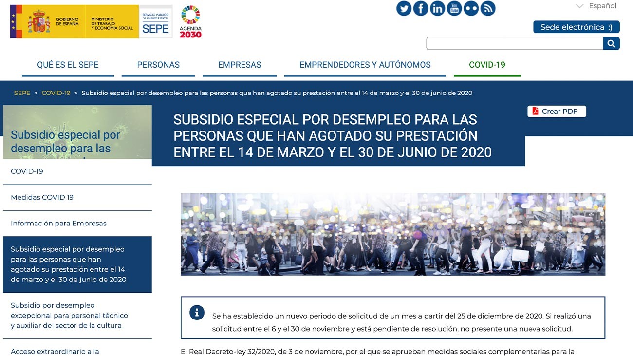 El lunes día 25 de enero termina el plazo para solicitar el Subsidio Extraordinario por Desempleo del SEPE para aquellos que agotaron la prestación durante el primer Estado de Alarma.